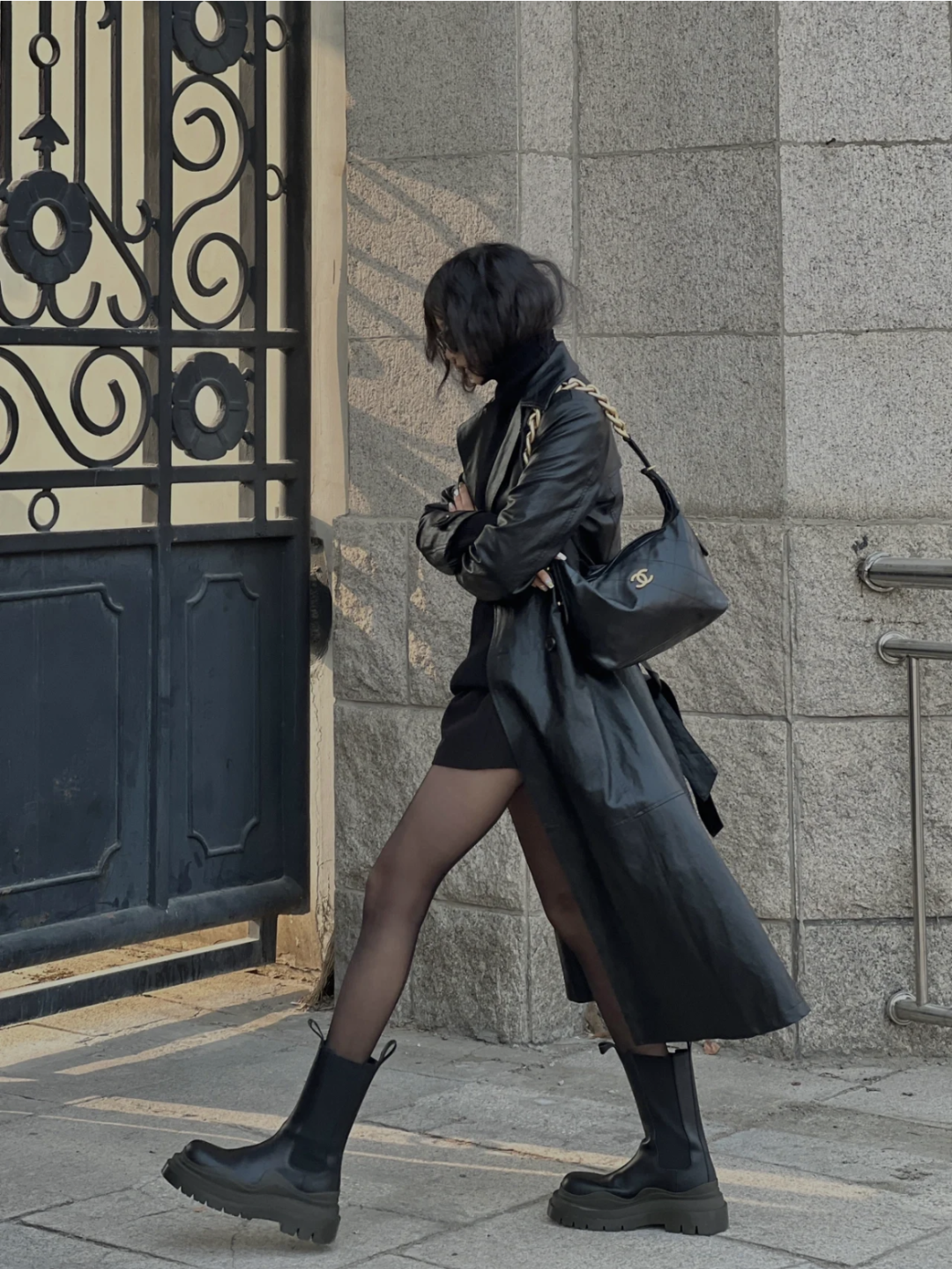 搭配长款风衣高级神秘,搭配短裙短裤又甜辣复古。