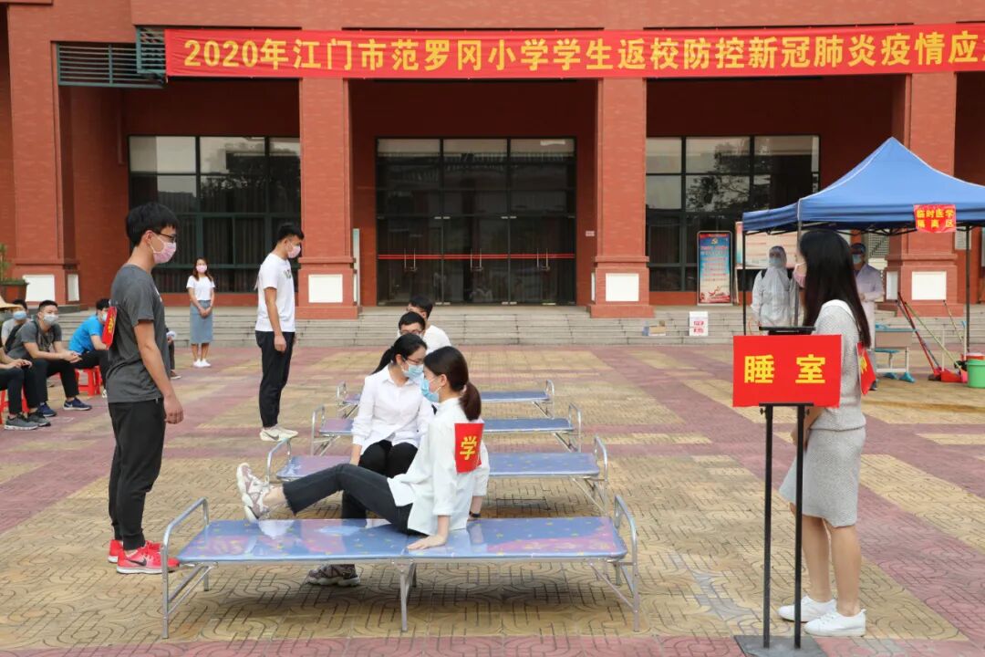 据悉,为了做好这次应急演练,4月10日该校邀请了蓬江区卫健局三位防疫专家实地考察,为本次防控应急演练把脉指导。4月13日,区卫健局领导小组组织学校三十多位教职员工进行“疫情防控开学应急处置演练”培训,认真学习了开学防控预案及流程。
