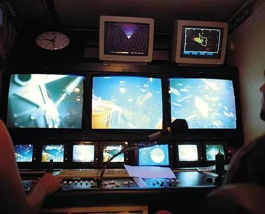 项目经理和各路专家会聚在这里,一边观看显示器上的图像,一边通过对讲系统与ROV驾驶舱通讯,协调驾驶员的操作,为他们出谋划策。