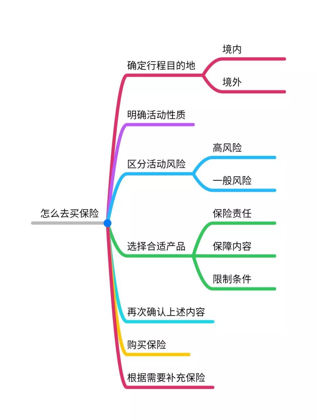 “选择合适的保险产品”这一过程中已经涉及到甄别保险责任,保障内容与限制条件,在购买保险前后,要再次确认是否符合自己预计的行程计划。