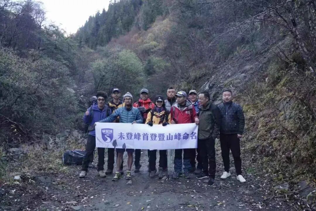 2020年11月,一拨登山者向四川登山户外运动协会(以下简称“川登协”)申请了一座四川未登峰的许可证,带着10人规模的队伍,朝着邛崃山脉的山峰进军。他们此行的目的正如队伍横幅上写的那样——未登峰首登暨山峰命名。