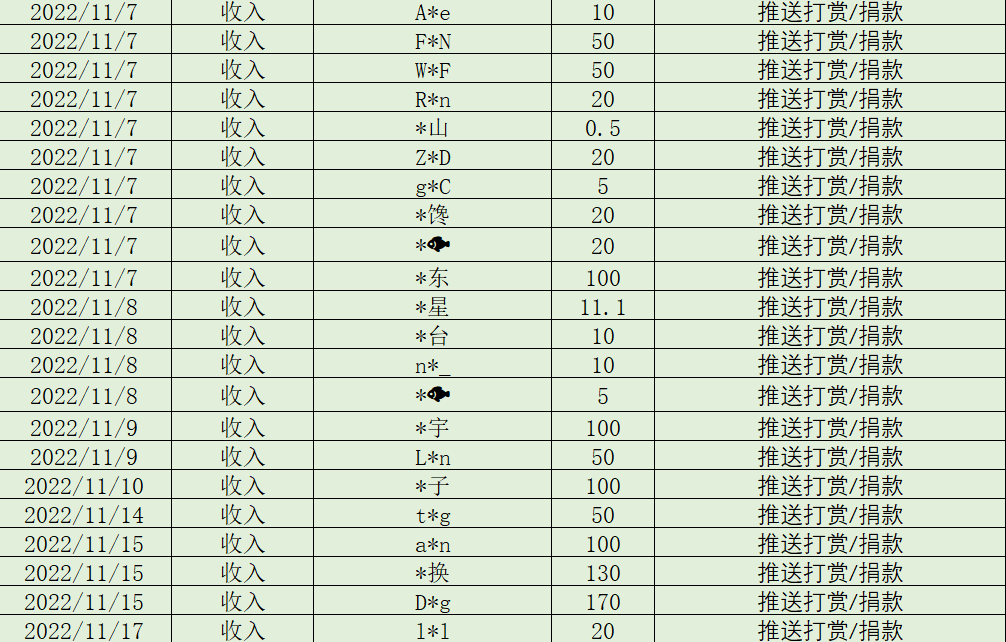 2022年11月收支账单