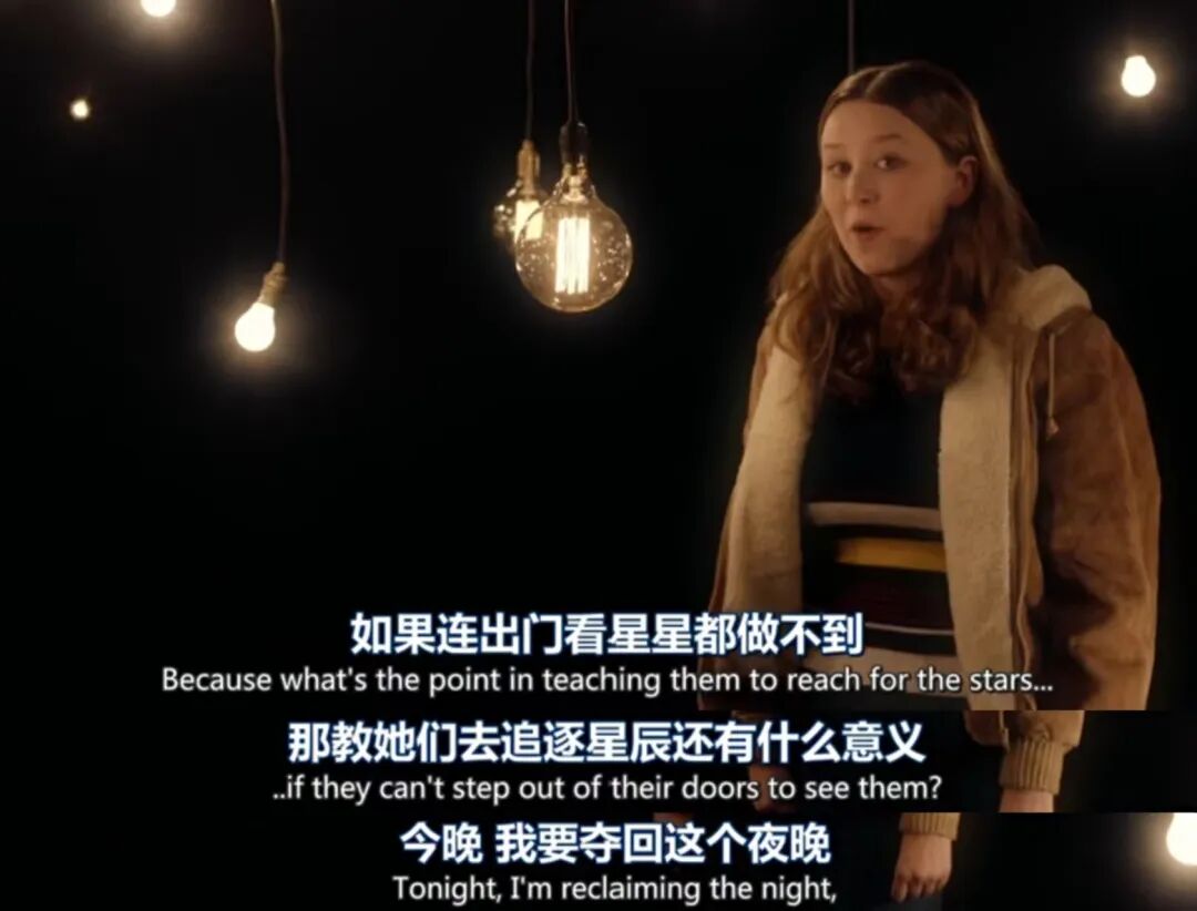 我希望她的夜晚9点是美丽的,是奇妙的,没有恐惧。因为如果连出门看星星都做不到,那教她们去追逐星辰还有什么意义?今晚,我要夺回这个夜晚,为了未来,她能拥有它们。」