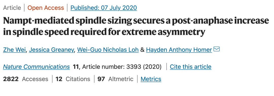 这项题为《Nampt-mediated spindle sizing secures a post-anaphase increase in spindle speed required for extreme asymmetry》的研究被来自昆士兰大学的科学家刊登在《Nature Communications》上。