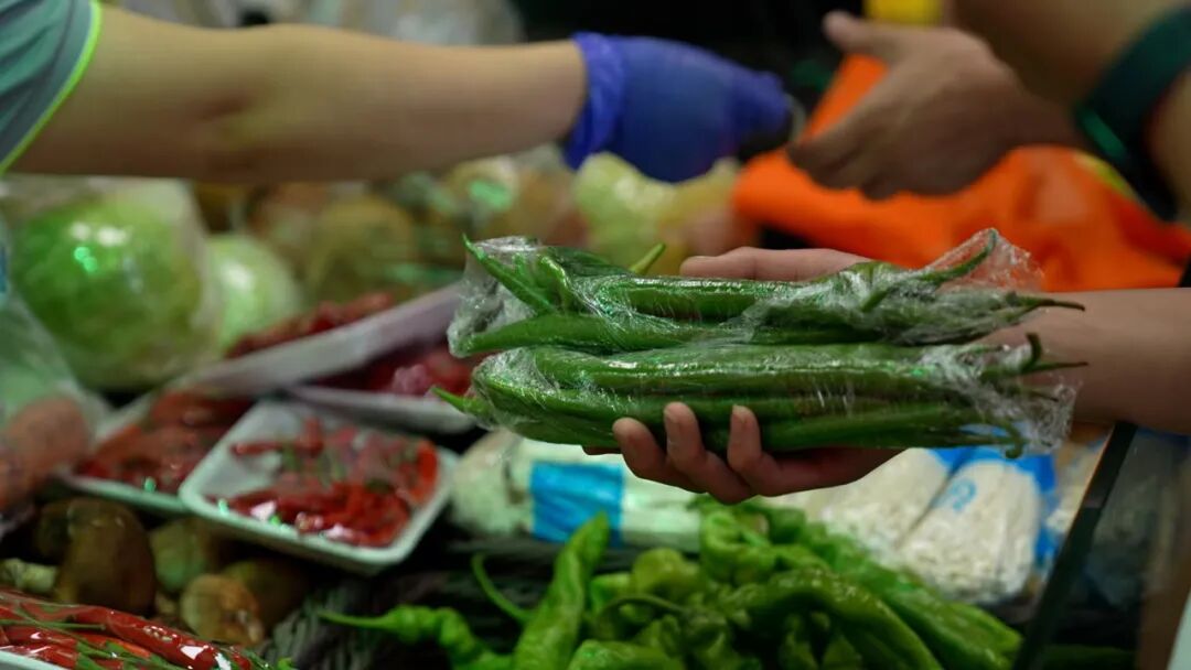 “请扫码测温,出示阴性核酸检测证明。”在物美泰河园店,记者观察到,前来采购的市民正遵循工作人员的引导,有序扫码测温进入市场。超市内,各类生鲜蔬菜水果、米面油、肉蛋奶等生活必需品供应齐全,市民们推着购物车,有序地挑选着商品。一位居民在蔬菜区一边挑选一边称赞:“苦瓜和白不老豆角三块九毛八一斤,不错,蔬菜新鲜,价格也没涨!”