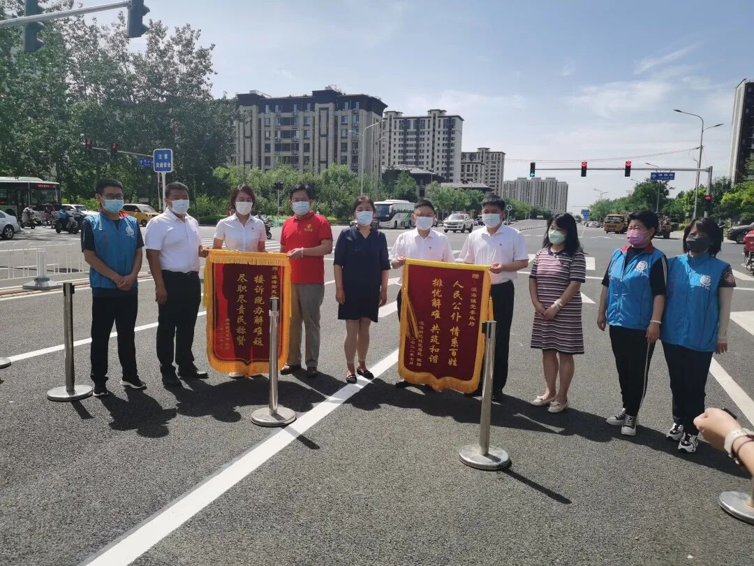 “断头路”打通当天,瀛海朗苑社区居民和附近的底商为瀛海镇党委、政府送来了锦旗。“这条路开通后,我们出行、就医、购物就方便多啦!这面锦旗,是我们感谢政府为人民群众办实事的一片心意!”