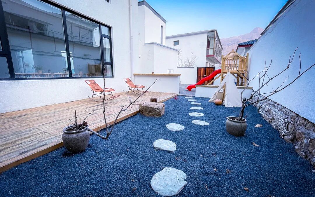亲子、文艺和禅意3个不同主题的院落坐落在民宿,其中亲子、文艺主题院落采用轻奢装修风格,各有4间客房配有5张大床,客厅、茶室、活动空间众多,可以完全满足成年人及儿童休闲娱乐的需求,适合家庭、好友相聚,小型公司团建、企业沙龙等。禅意主题院落采用新中式装修风格,配有2间客房,独具特色的茶室、书房让人瞬间忘记城市的喧嚣,清风徐来、风铃作伴,身在其中,生活仿佛按下了暂停键。