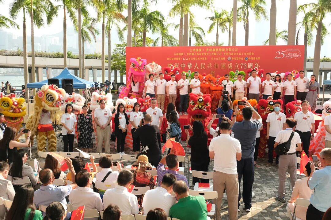 25位嘉宾为25只醒狮点睛,并吐出“同庆回归”、“共贺国庆”的彩旗,以中华民族传统庆典的隆重方式庆祝香港回归祖国25周年和国庆73周年。香港中国国术龙狮总会的“雄狮起舞”、武术“旗开得胜”完全由香港青少年表演,体现了中华传统文化的传承发展。警务处中国文化学会中乐团及惩教署中乐团首次联袂演出,演奏“勇敢的中国人”、“东方之珠”、“万水千山总是情”;香港青少年国乐团演奏“龙的传人”、“狮子山下”、“前”;2022年全港青少年杯大赛冠军、12岁的张家欢小朋友古筝独奏“井岗山上太阳红”、詠舞艺术团的中国民族舞蹈“小嫚”等精彩纷呈的节目高潮迭起,赢得了现场观众的热烈掌声,表达了香港民众坚定支持“一国两制”、喜迎二十大、庆祝香港回归祖国25周年和新中国成立73周年的喜悦之情。