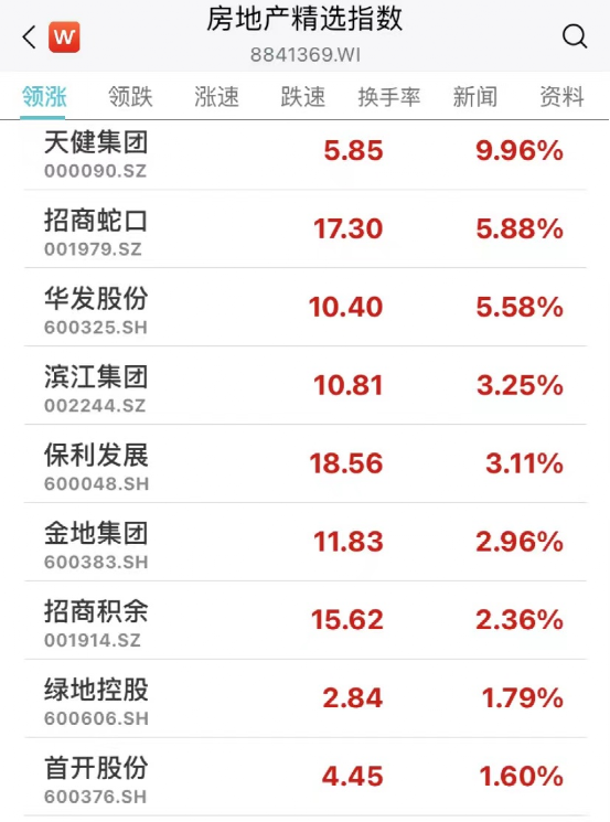 在稳地产的多重利好政策的推动下,地产股震荡上行,海泰发展、天健集团涨停,华发股份、保利发展、招商蛇口纷纷跟涨。
