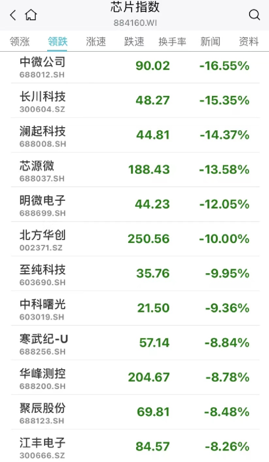 今日开盘,半导体、芯片概念股集体下挫。千亿市值的中微公司、长川科技、澜起科技均跌超14%,另外芯源微、明微电子、至纯科技等跟跌。