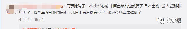 有在日本的中国网友将这本书的照片和简介发在了微博,引来众多网友的评论。过去日本人写的涉及中国历史,尤其是抗战历史的书,因为他们不肯承认历史,甚至肆意歪曲历史的态度,让我们很愤怒。