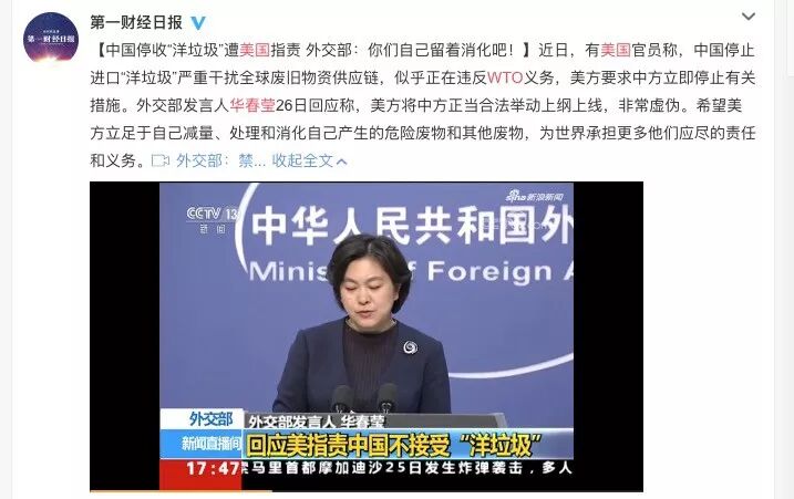 但起因却是中国禁止进口固体洋垃圾政策的施行。