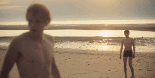 两个年轻气盛的年轻人在海滩上寻欢作乐。