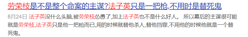也有人认为劳荣枝才是幕后主谋,她以美色蛊惑法子英替自己背锅。