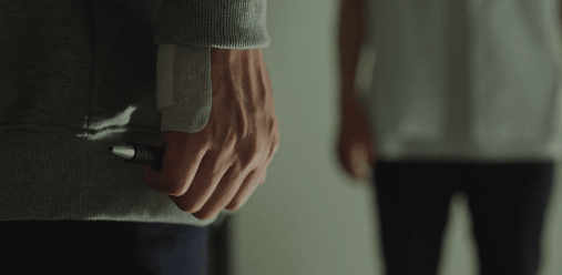 之前他用圆珠笔插小混混的跟班的手时,整个流程是按压圆珠笔,插笔,小混混的跟班受伤。