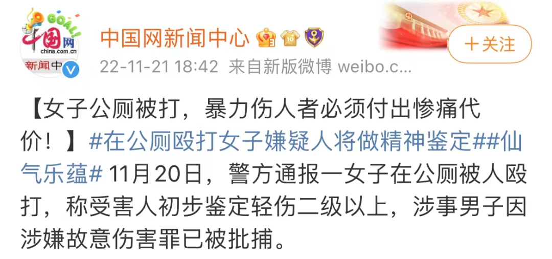 前不久,浙江一女子在上公厕时,被一名19岁男子殴打。