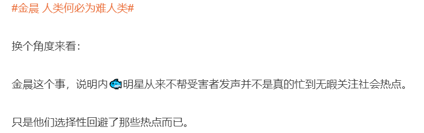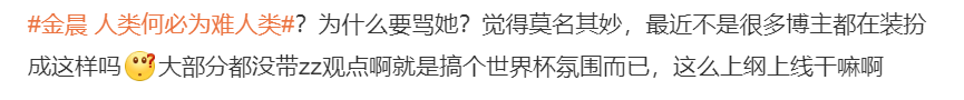 她却又用一则「人类何必为难人类」的回应,引发了更强烈的质疑声。许多人开始觉得金晨被骂有点冤。