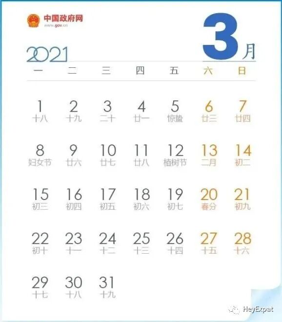 • On November 25th, 2020, China's General Office of the State Council announced the official national holiday schedule for 2021.