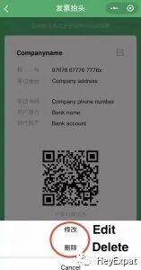 You can share your fapiao to WeChat friends by clicking on the small circle icon in the top right-hand corner. You can also edit or delete your fapiao by tapping on the small edit icon next to ‘company name.’