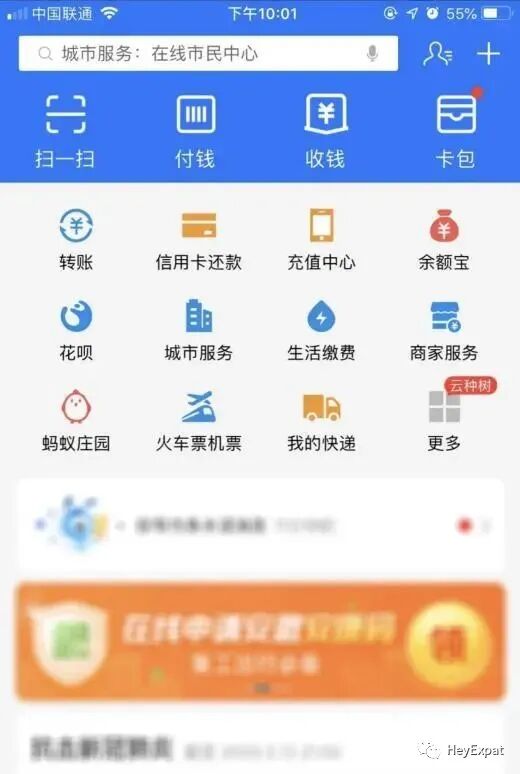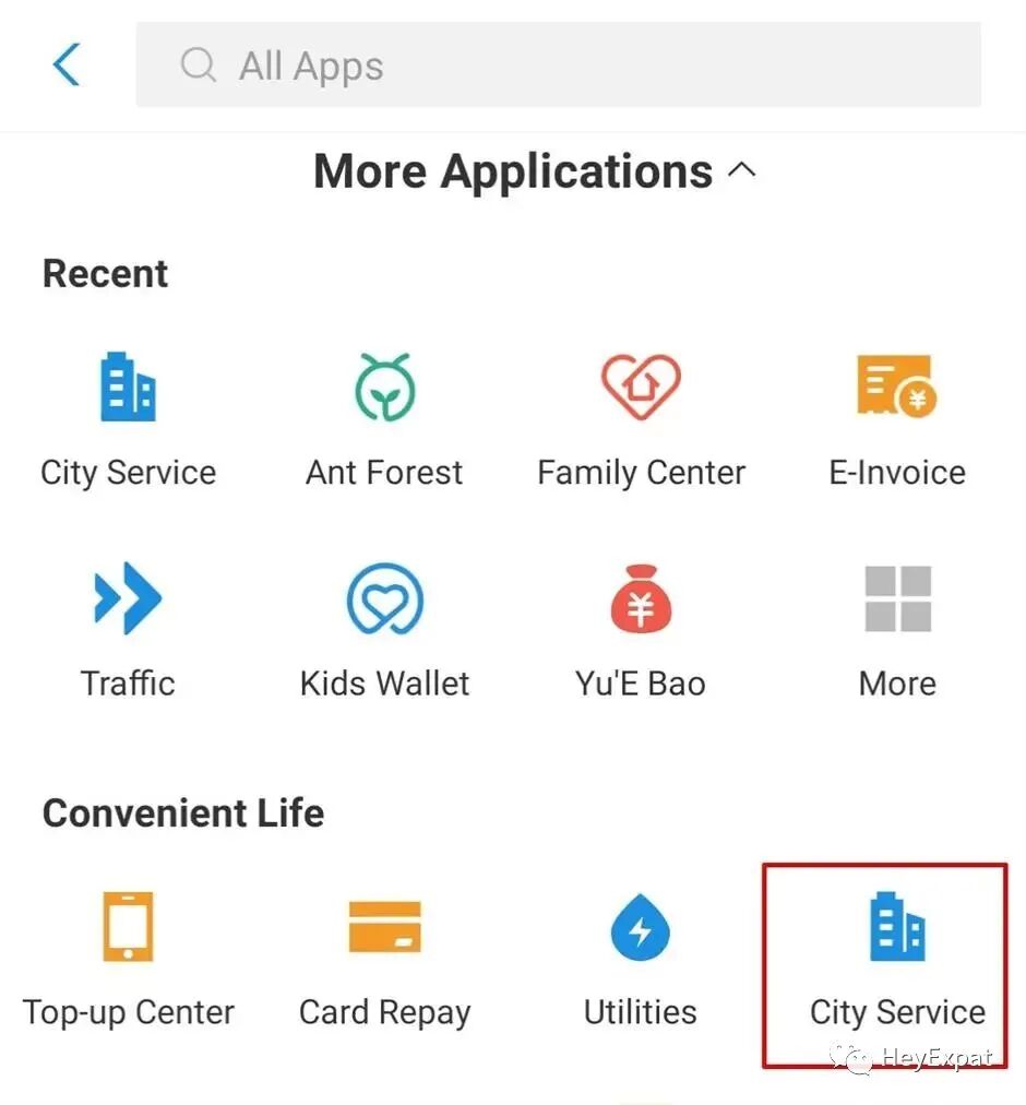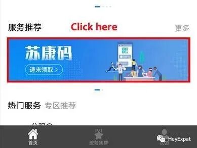 Step 3: Click “City Service” on the Application page. | Step 4: Click the second icon from the left on the Shanghai Service page to apply for the code. |