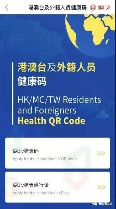 Click “HK/MC/TW Residents and Foreigners Health QR Code” | Click “Apply for the Hubei Health QR code” |