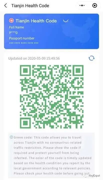 A green code allows you to travel across Tianjin with no coronavirus-related traffic restrictions. Please show the code when required, and strive to protect yourself from being infected. The colour of the code is updated frequently, according to relevant policies, based on the health condition reported to the local government. Please check your health code before going out. |