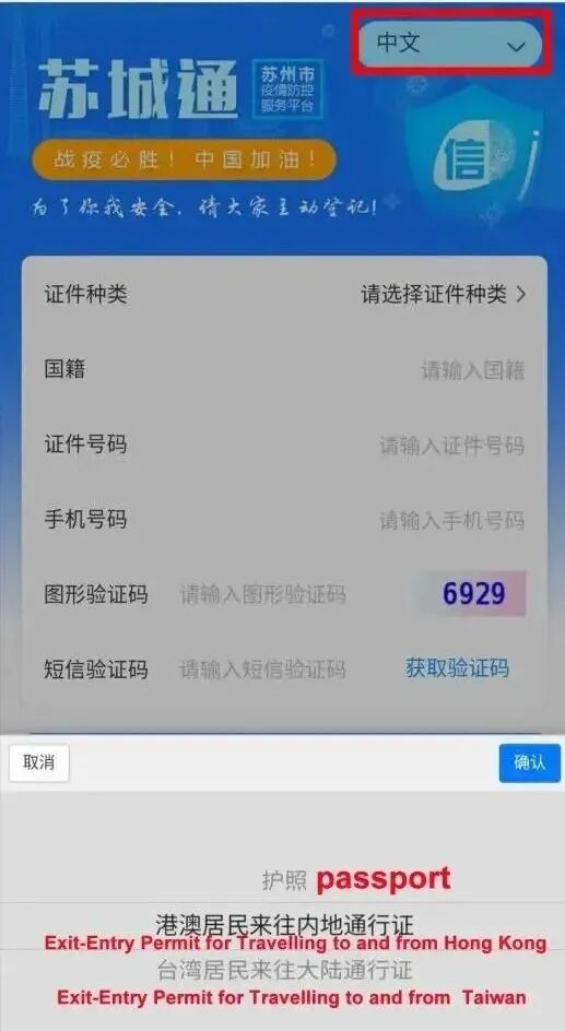 When you enter the application page, you will see a special note of your declaration, which states that the information provided by foreign nationals is voluntary and not mandatory; and the information provided is only used for the prevention and control of the COVID-19. Users can select the language in the upper right corner, and proceed to the next step by clicking Next.