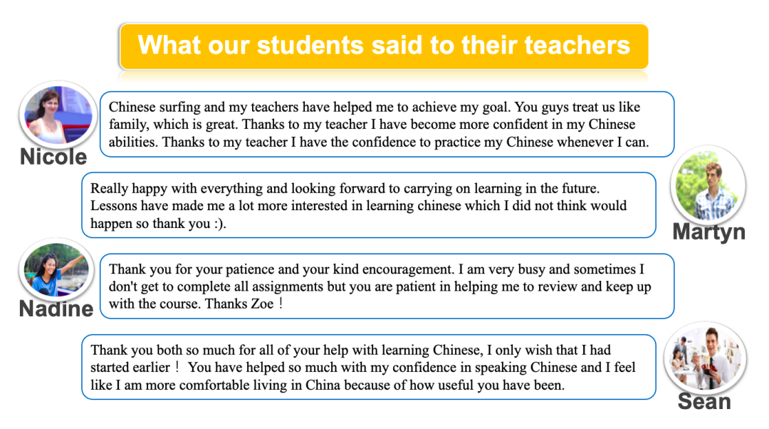 As our student Sasha once said: "I felt lucky to find Chinese Surfing! I thought the online class would just be via WeChat video call or something, but it turned out it’s so interesting and effective, and I made progress every class, which is much better than I had thought it would be."