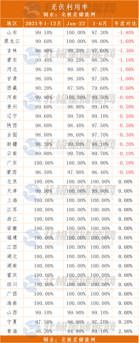除了山东之外,近半年以来,还有四川攀枝花、江苏昆山、浙江诸暨/永康绍兴、河北等地也投都提出了分布式发电项目需配储能,截至目前,已有9省市对分布式发电配建储能规模提出了明确要求,其中仍然以山东枣庄配储规模要求最高,具体为光伏装机容量的15%~30%建设储能,且储能时长2~4小时。而配储需求蔓延向分布式的原因,或许来源于新能源消纳问题。从全国省级区域新能源并网消纳情况来看,2022年上半年,以山东为首的15个省区光伏利用率较2021年度下降,新能源消纳已经成为新能源开发建设的前提条件,因而新能源配储能的要求也在逐步推向分布式发电领域,山东就是其中一例 。![]()
