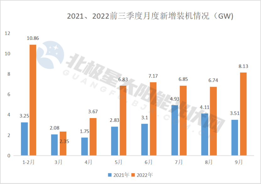 日前,国家能源局发布《2022年前三季度光伏发电建设运行情况》,前三季度新增并网容量52.60GW,同比增长105.8%。