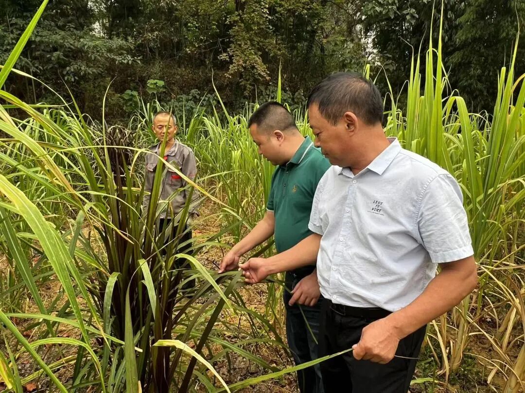 ▲查看饲草生长情况。记者 赵竹萱 摄