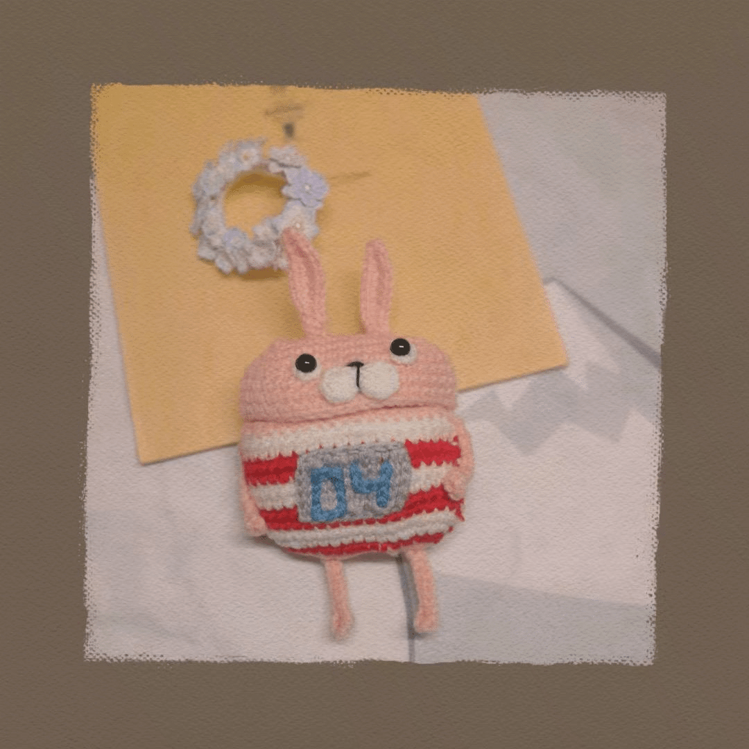 6号蕾丝线钩织,难度在于衣服制作以及帽子上的花纹,丙烯在衣服画图案。