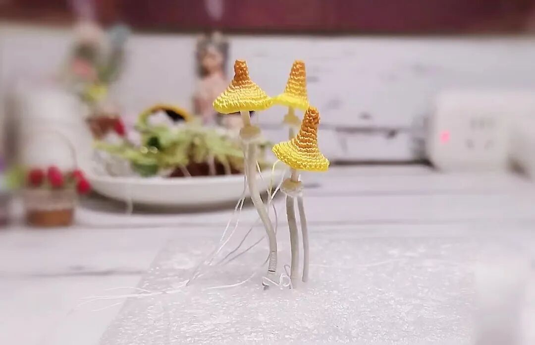 DMC80号蕾丝线,用纸包铁丝凹造型时思考怎么做出植物自然形态,调色时注意深浅适宜,晾干时防止串色。