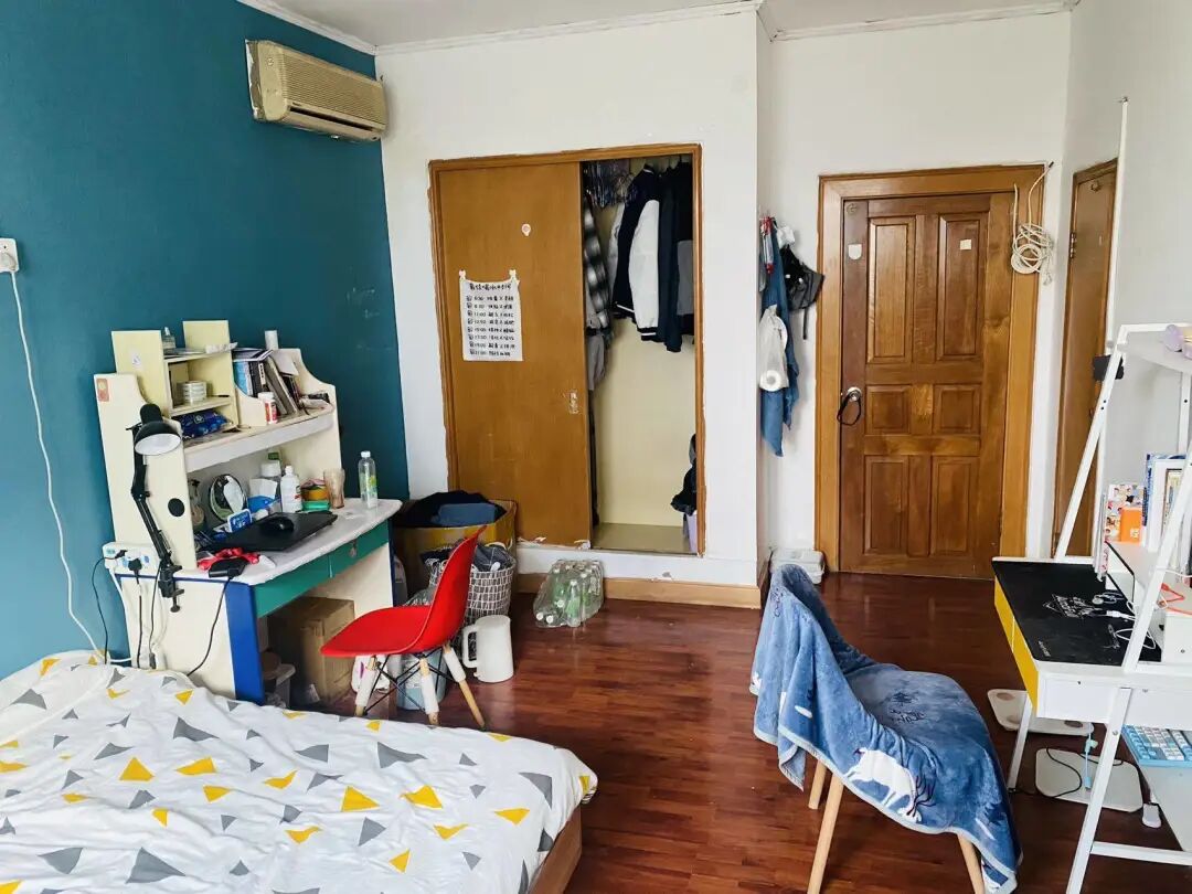 四居中的主卧,客厅一间隔断,外面还有四户。居住情况:外面厨房和卫生间都比较干净,大家平时维持的比较好,屋里女生偏多。