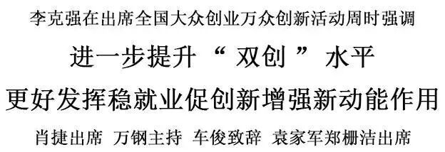 李克强说,“双创”有力支撑着就业。就业是最大民生,“双创”为我国丰富的人力资源特别是年轻人打开了广阔就业空间,有利于促进比较充分的就业,让每个家庭有安身立命之本。各级政府要深化“放管服”改革,优化营商环境,进一步落实更大规模减税降费政策措施,让创业创新者按照市场规则公平竞争、轻装上阵,为“双创”提供良好的成长空间。