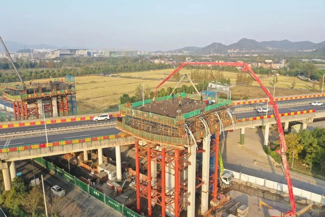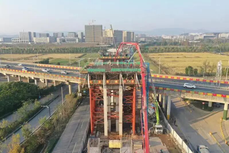 瓶仓互通跨杭长现浇箱梁一共有6个截断,工艺复杂,施工周期长,是瓶仓互通的重要节点,预计于明年4月底施工完成,届时瓶仓互通工程也将进入扫尾冲刺阶段。