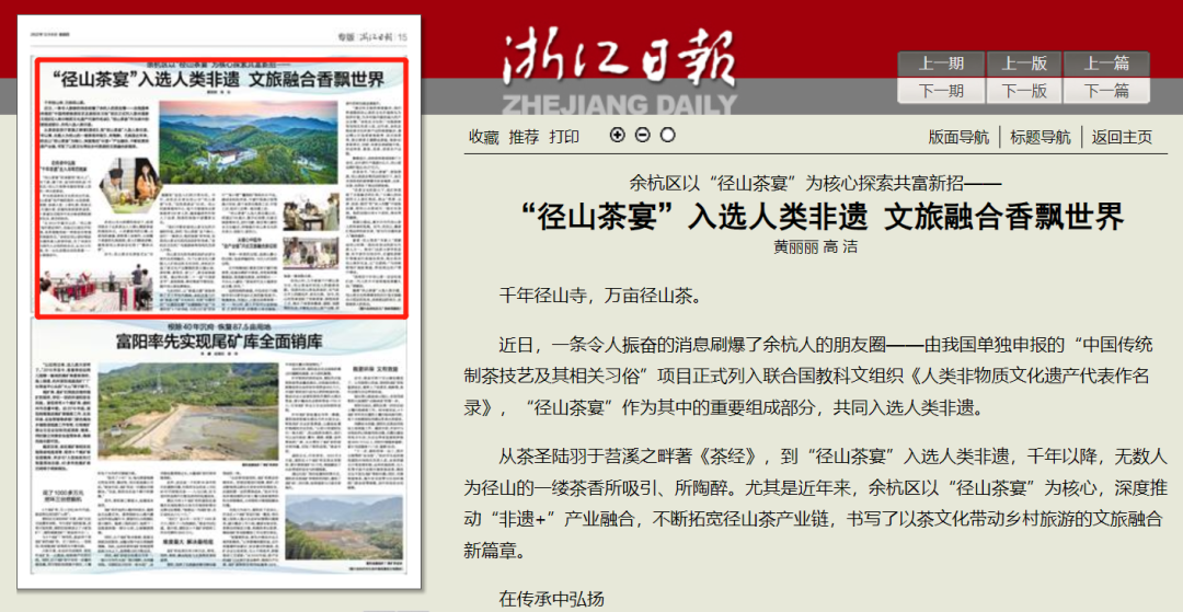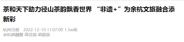 尤其是近年来,余杭区以“径山茶宴”为核心,深度推动“非遗+”产业融合,不断拓宽径山茶产业链,书写了以茶文化带动乡村旅游的文旅融合新篇章。