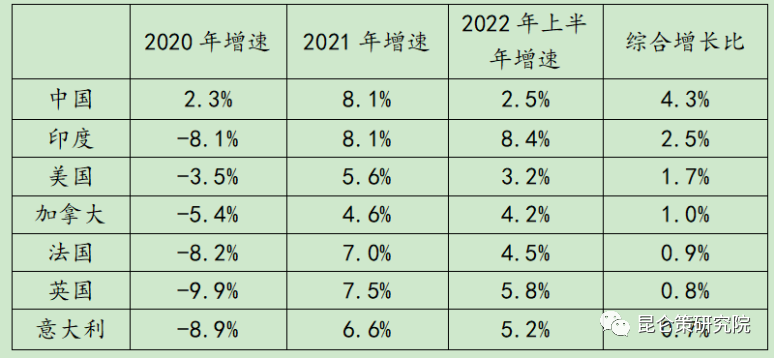 【表4 2020-2022上半年世界重要国家三年综合增长比】