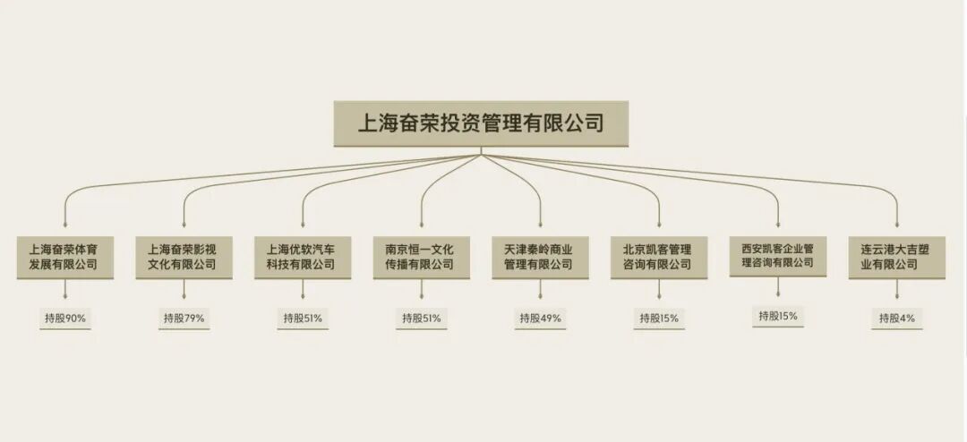 奋荣投资是秦奋的主要商业投资抓手,其持股比例为65%。据悉,秦奋生平有“三爱”:跑车、电竞和篮球。奋荣投资成立于2012年,旗下公司涉足体育、影视、电子竞技、汽车、初创投资等方面,不难看出,所涉领域也都是秦奋的日常爱好。