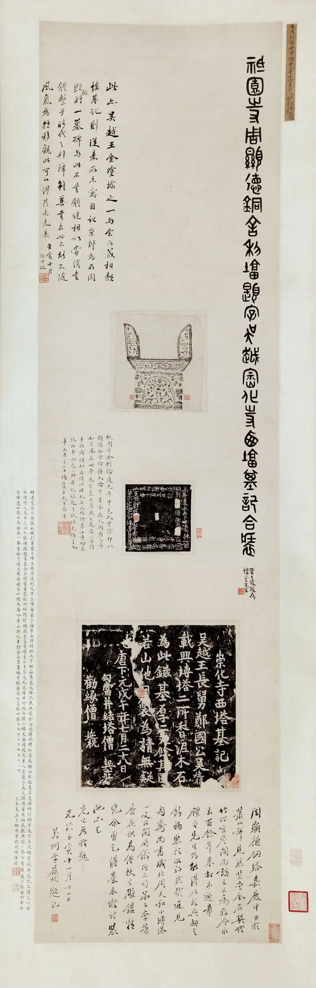 达受(即六舟)手拓,左裱边有钱镜塘抄录《海宁州志稿》六舟小传文。六舟是嘉道年间最著名的金石僧人,浙江海宁人,工书画,精鉴赏古器、碑版,摩拓彝器,时称绝技。