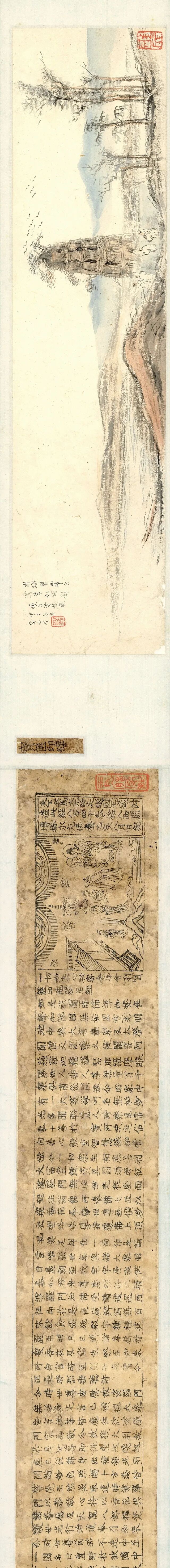 此卷原置于铁阿育王塔内,铁塔底铸“吴越国王俶/敬造宝塔八万/四千所永充供/养时乙丑岁记”。“乙丑岁”即宋太祖乾德三年(965年)。塔身内置小木筒,筒内装此经卷。