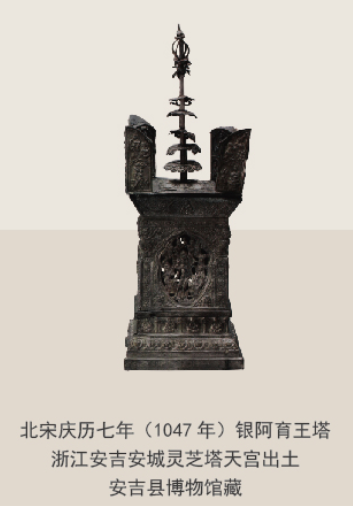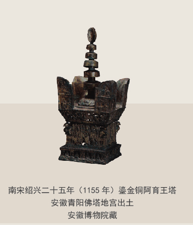 阿育王塔是五代时吴越国王钱俶效仿阿育王造八万四千塔而铸造的一类小塔。南宋智磐《佛祖统记》卷四三《法运通塞志》载:“吴越王钱俶,天性敬佛,慕阿育王造塔之事,用金铜精钢造八万四千塔,中藏《宝箧印心咒经》,布散部内,凡十年而讫功。”