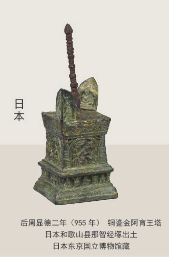 吴越国又开官府大规模刻经之先河,开塔内瘗埋雕版佛经风气。钱俶以金铜铁铸造八万四千座阿育王塔,又雕印八万四千卷《宝箧印经》藏其中。此举不仅在中国佛教史上影响重大,也影响了日本、韩国佛教发展。