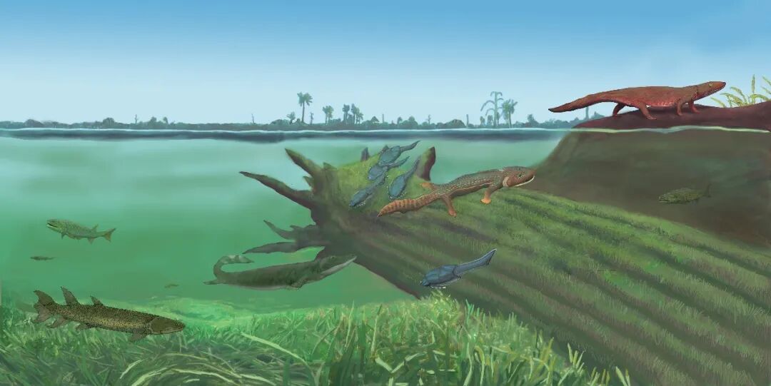 石炭蜥类是羊膜动物的祖先,从它之中演化出了爬行动物,从而进一步演化为现在的鸟类、哺乳类等。