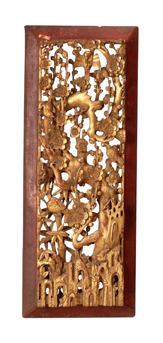 金漆木雕状元及第花鸟纹楣板