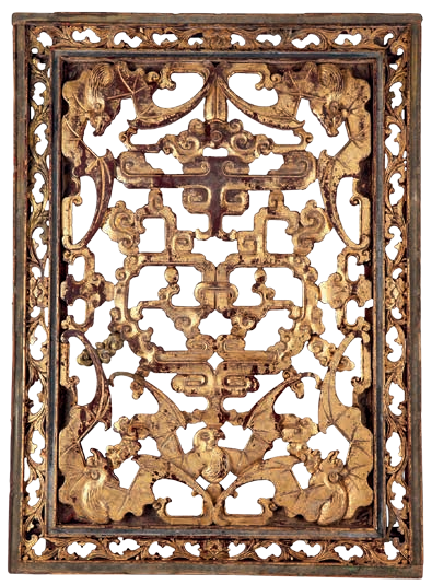 金漆通雕五福拱寿纹花板
