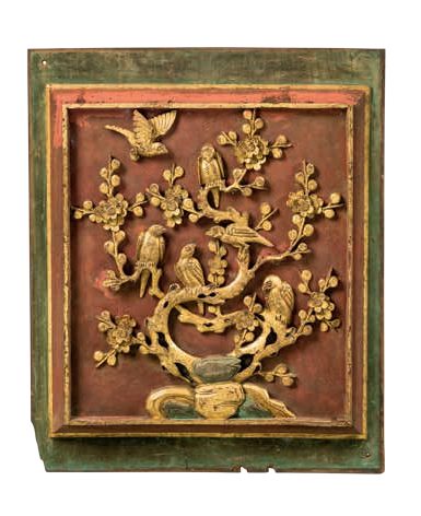 木雕喜鹊登梅图构件