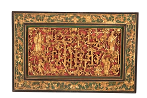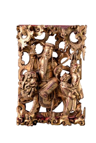 金漆通雕福禄寿三星图花板