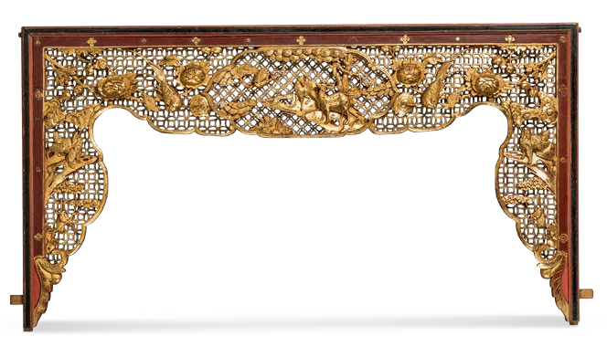 金漆通雕开光瑞兽喜鹊图床楣