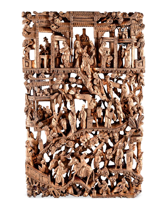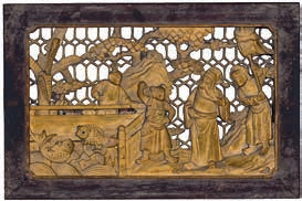 潮州金漆通雕王茂生进酒图花板